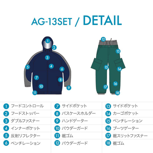 - 【10月上旬発送予定】 ASHGREEM アッシュグリーム スノーボードウェア ラグランジャケット 上下セット AG-13SET